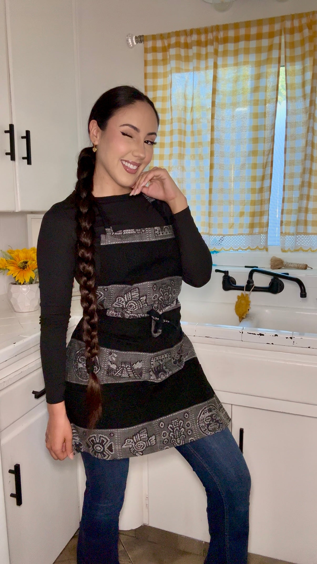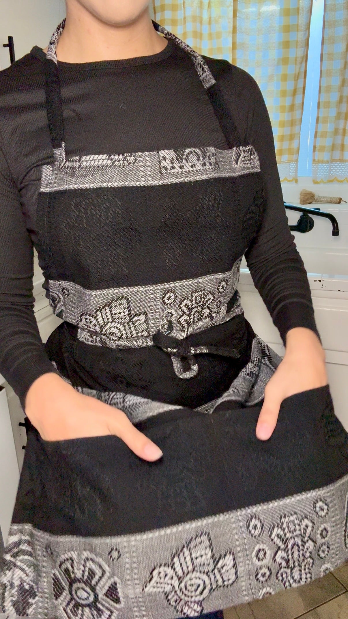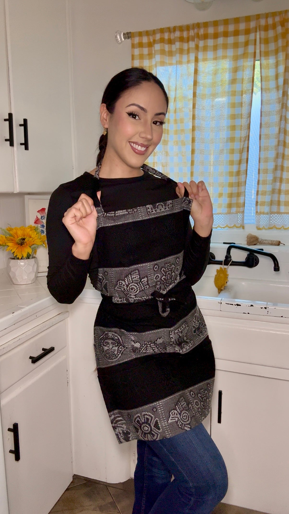 These aprons have an hispanic pattern with black and gray patches. They have two pockets and perfect for any chef. ππ€