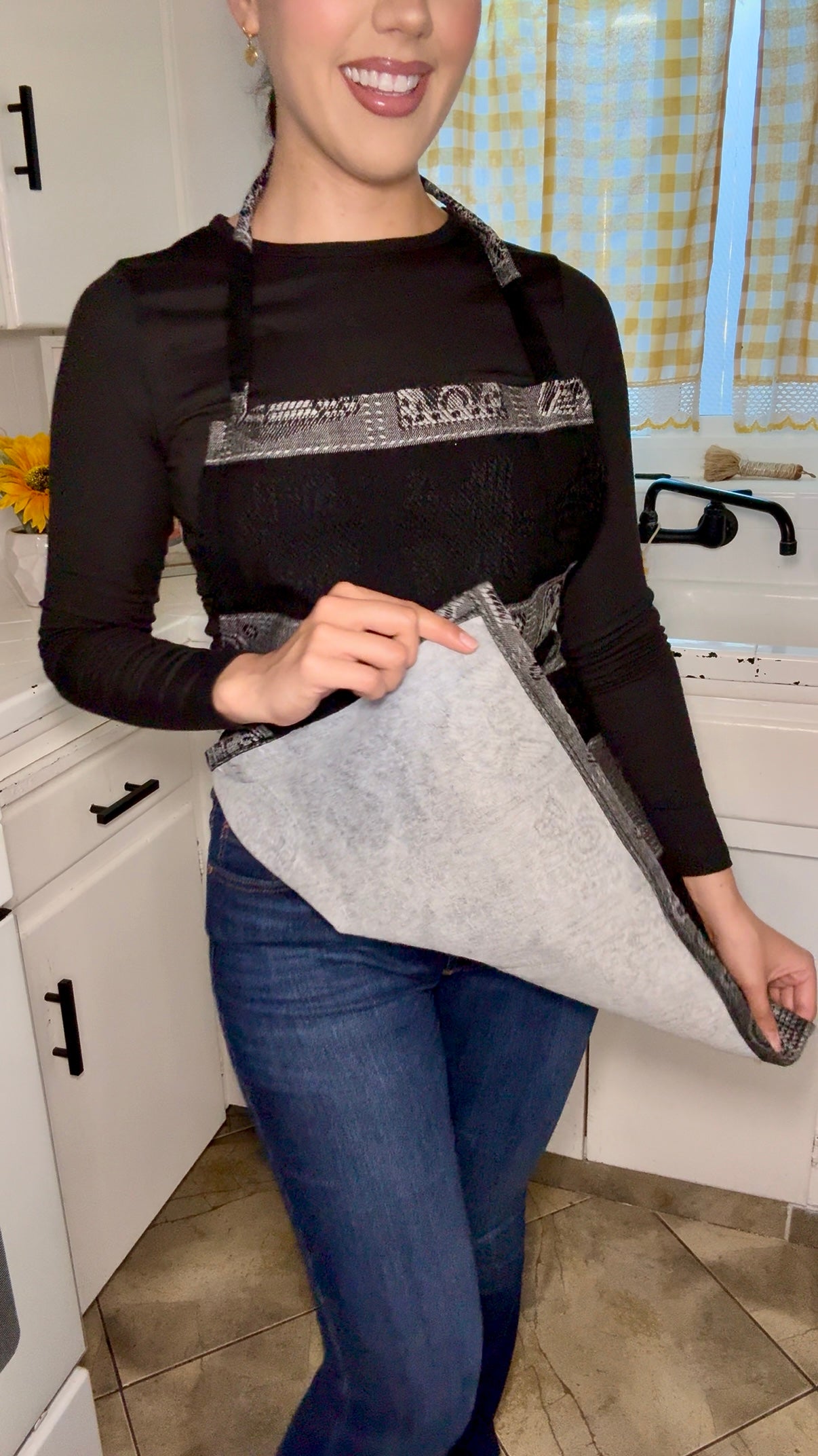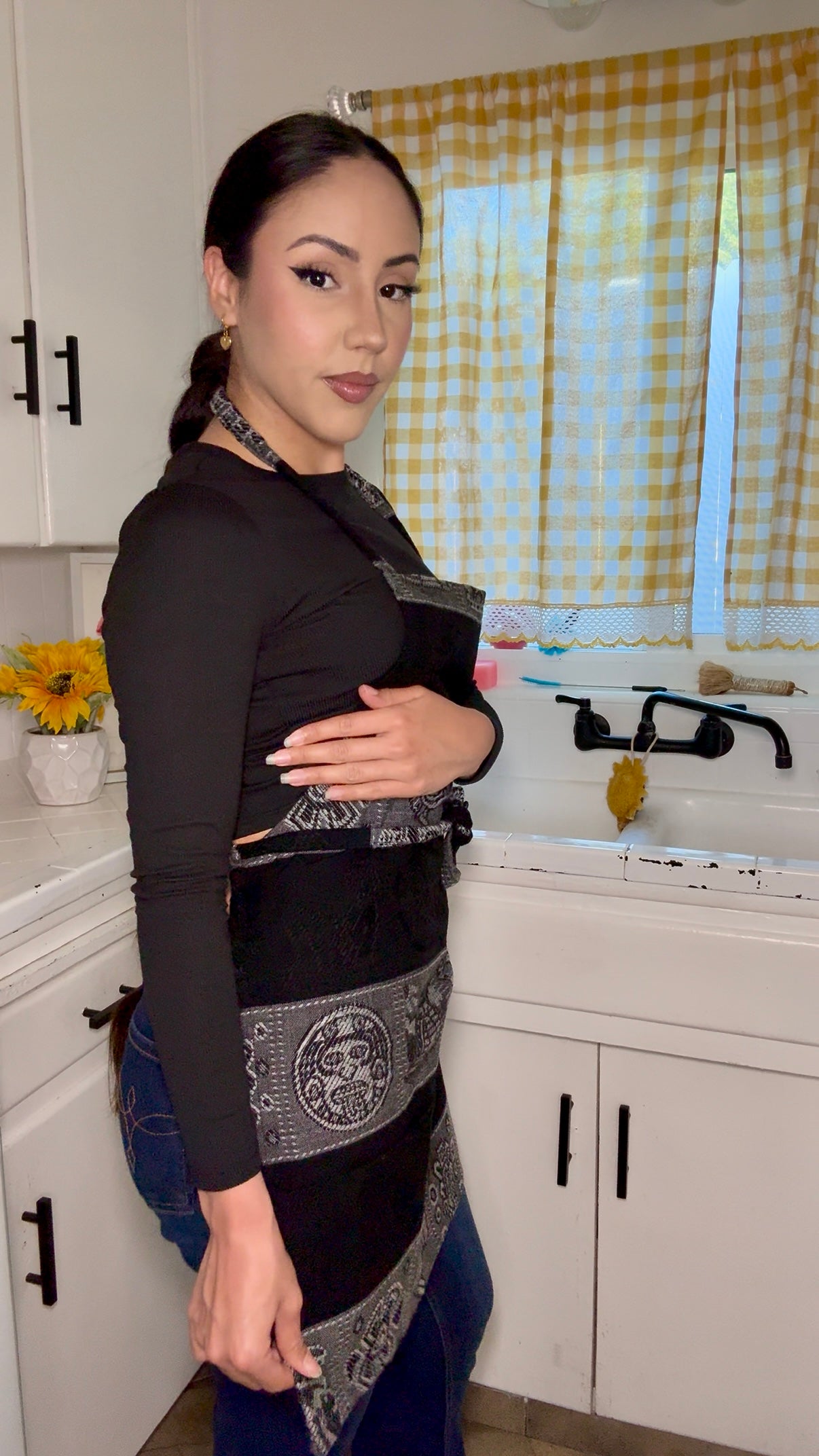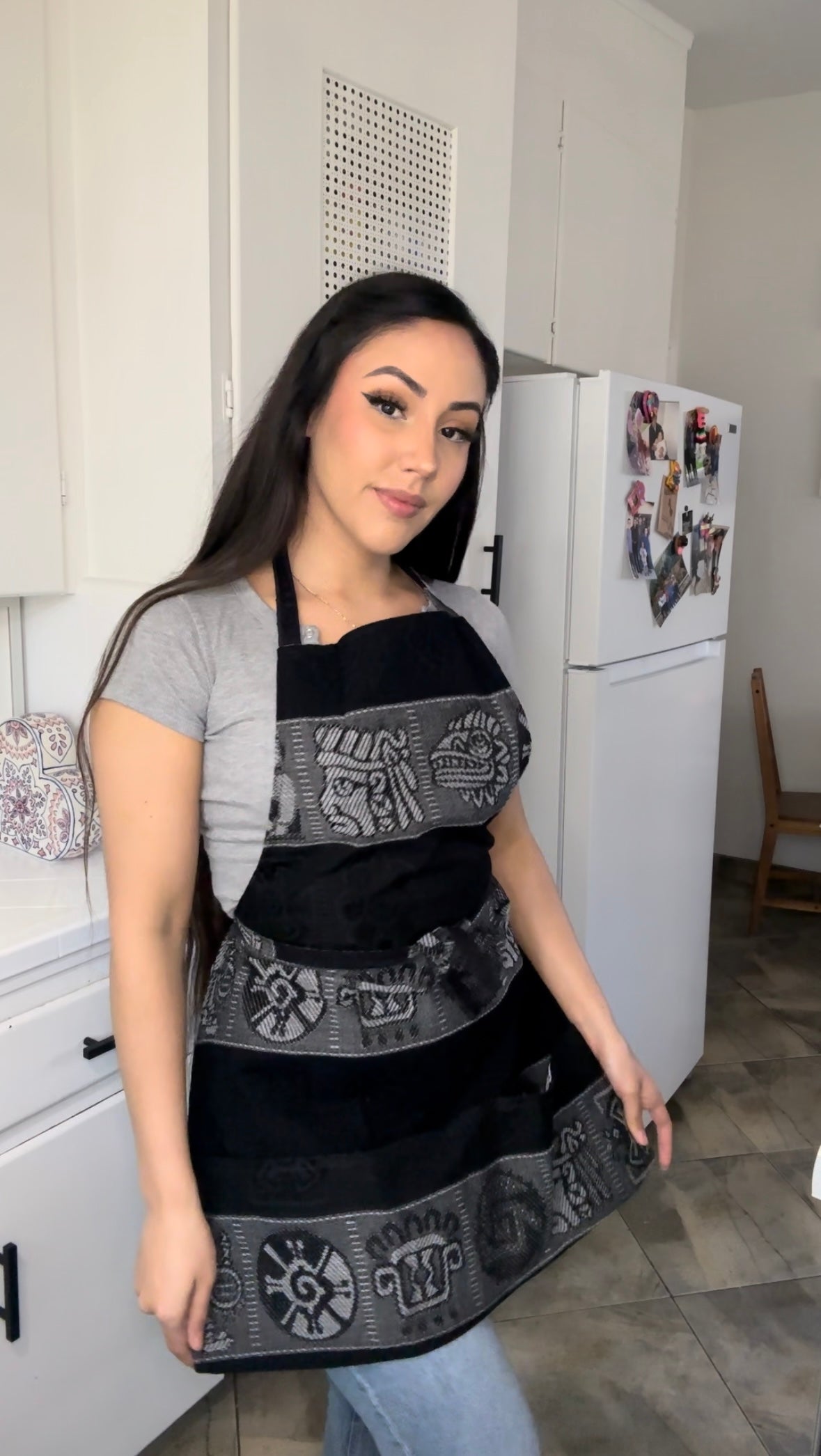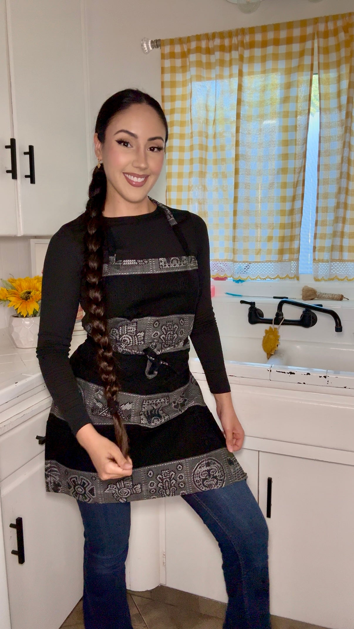 These aprons have an hispanic pattern with black and gray patches. They have two pockets and perfect for any chef. ππ€