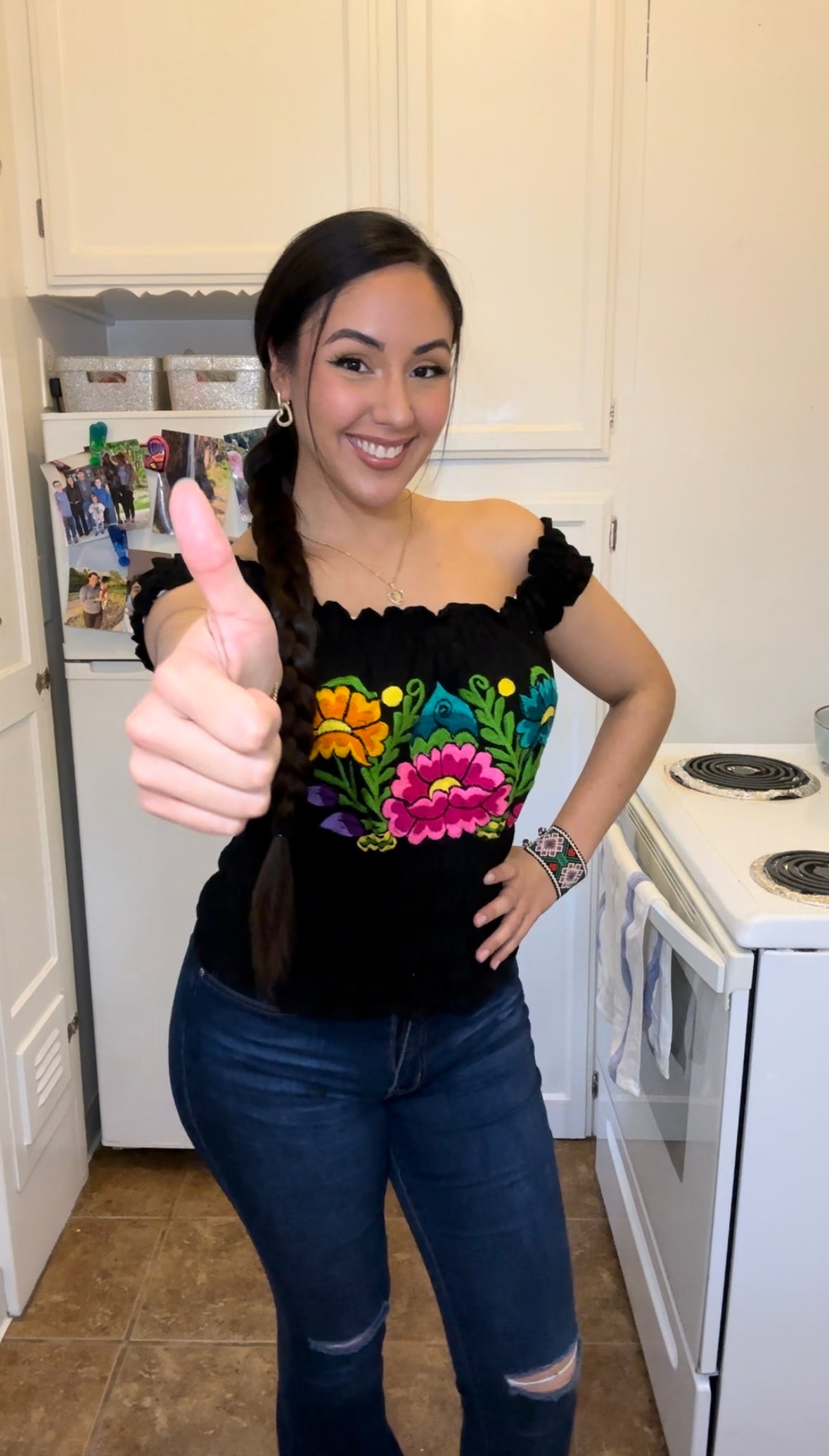 This is a handmade top with multicolored, Mexican, embroidered flowers on the front.