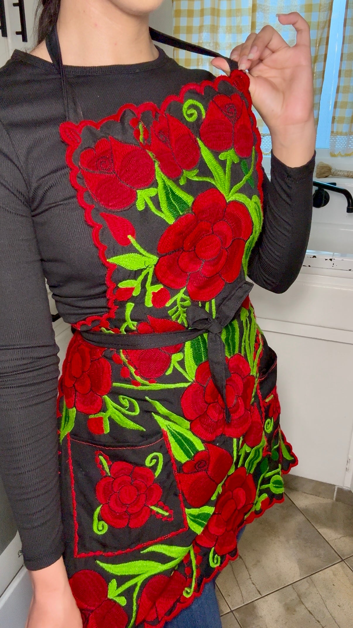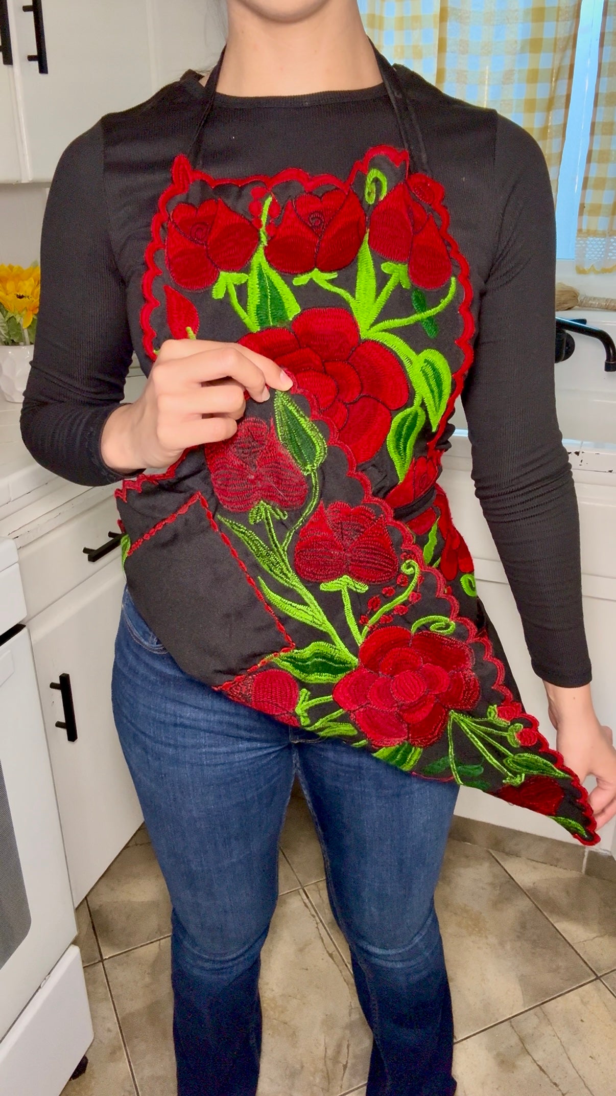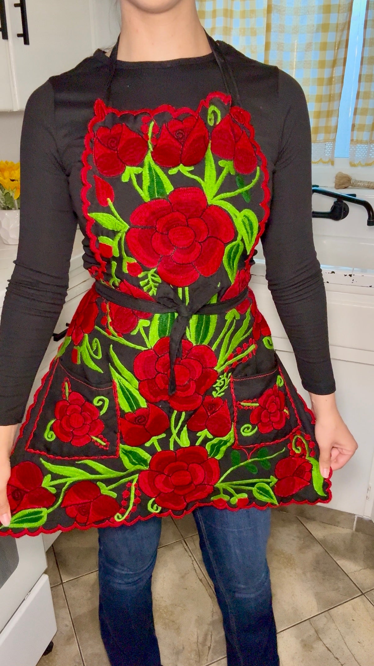 These are gorgeous, traditionally embroidered, one-of-a-kind aprons with Mexican embroidery. 🌹