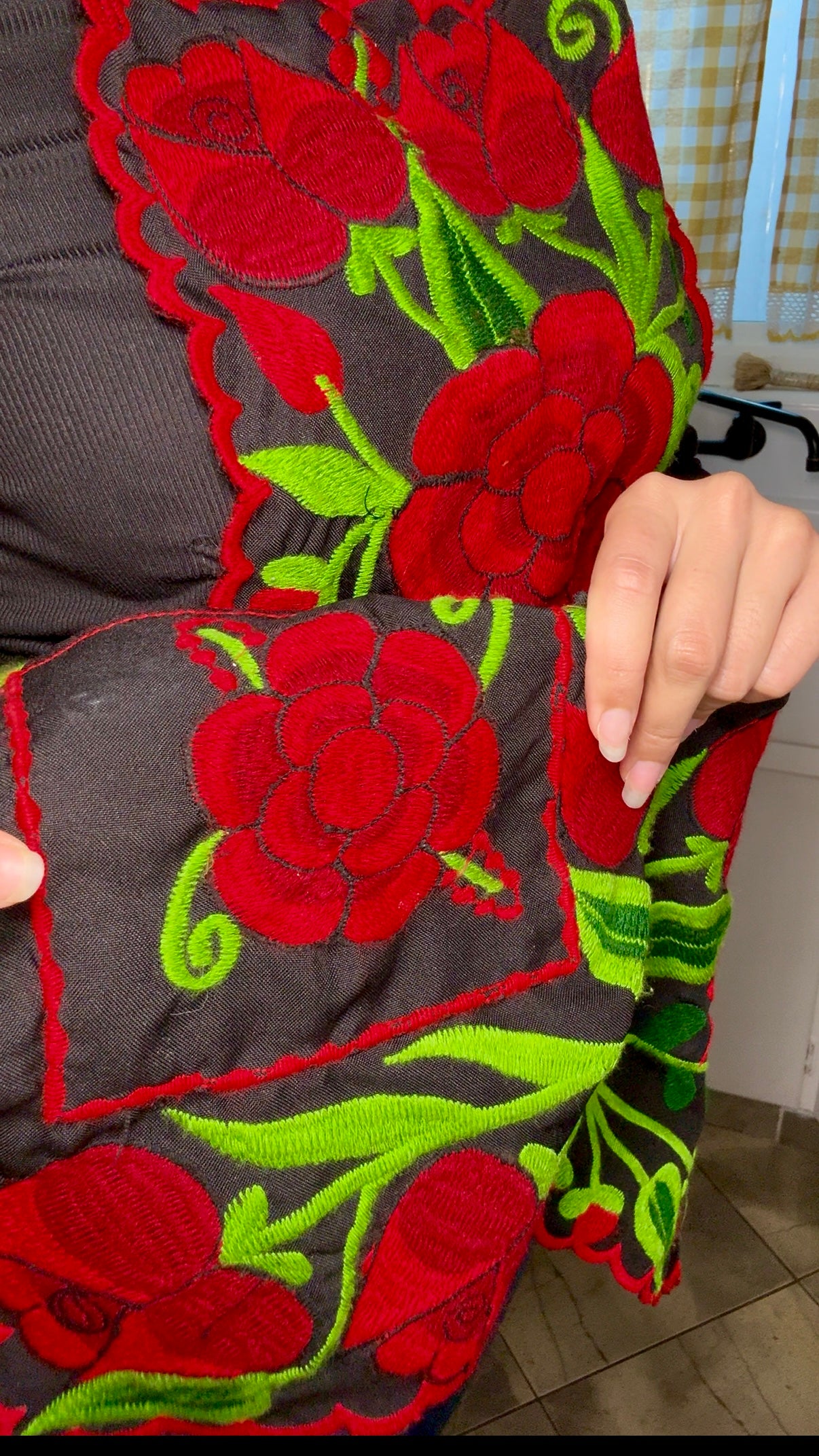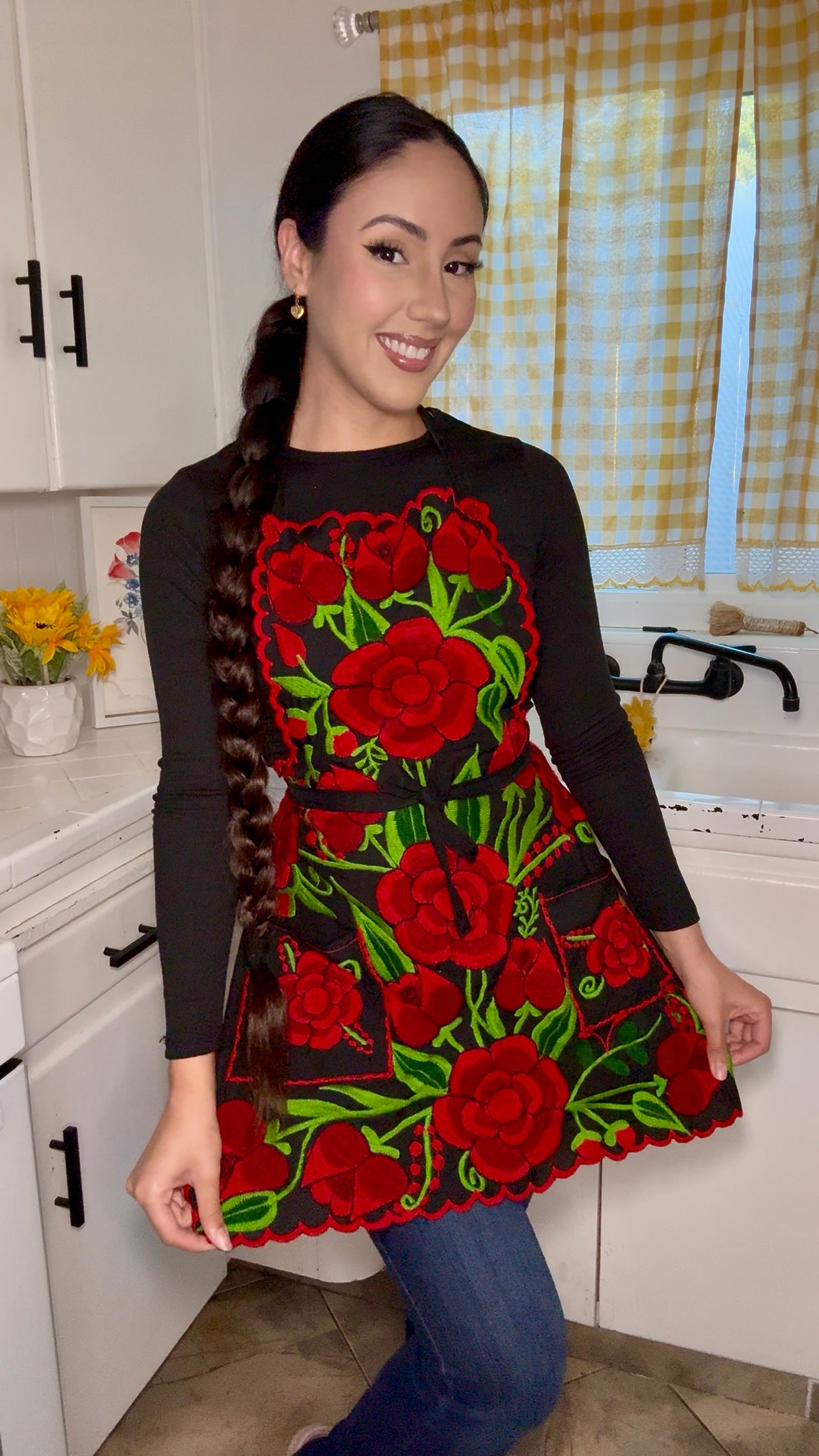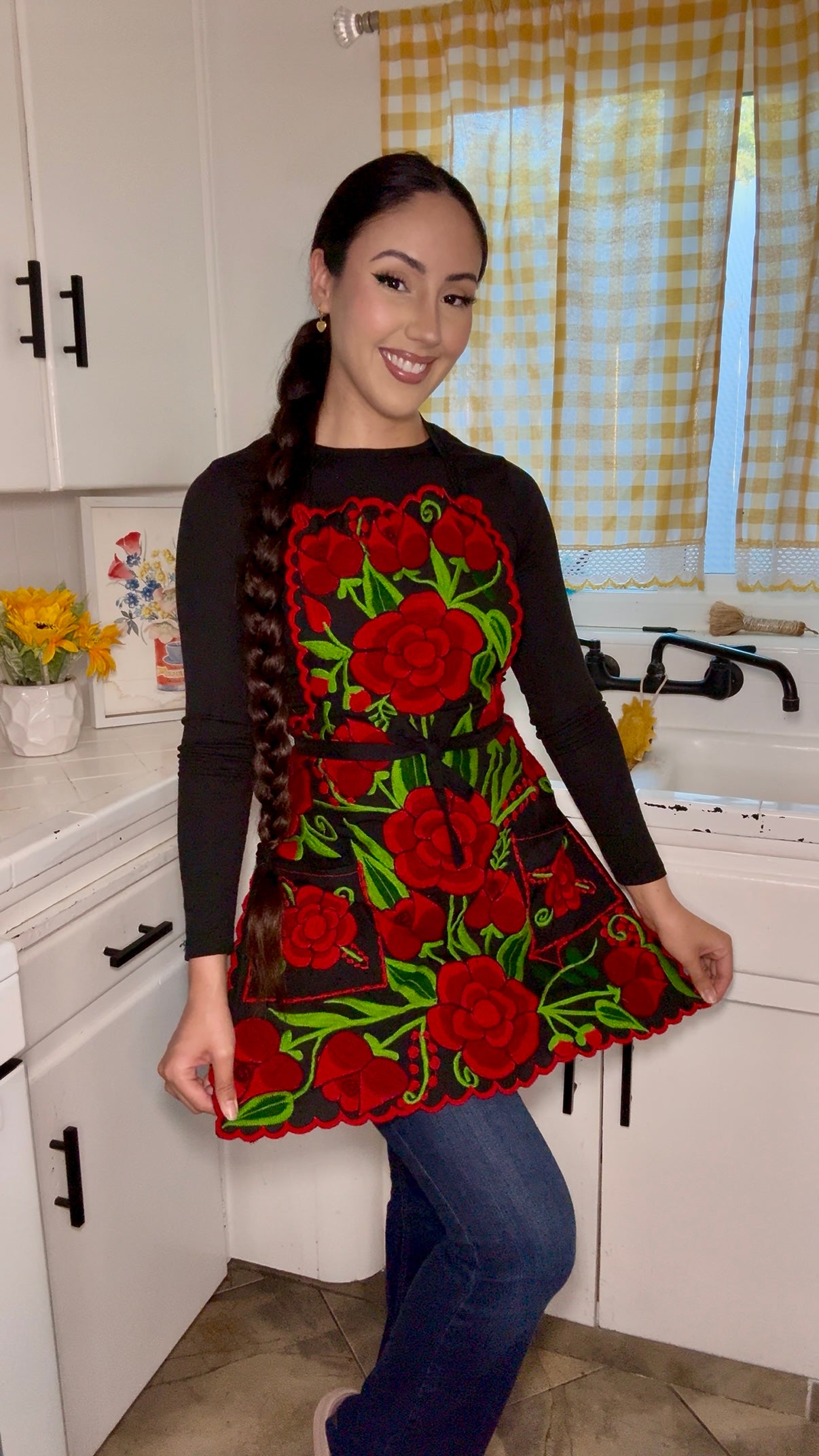 These are gorgeous, traditionally embroidered, one-of-a-kind aprons with Mexican embroidery. 🌹