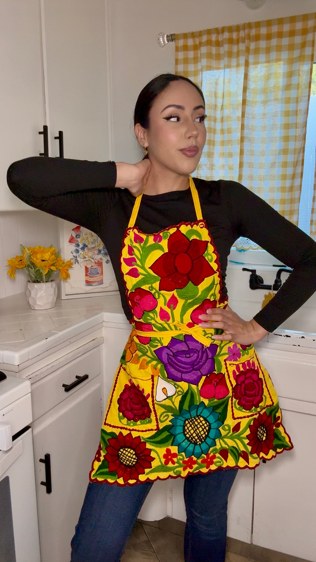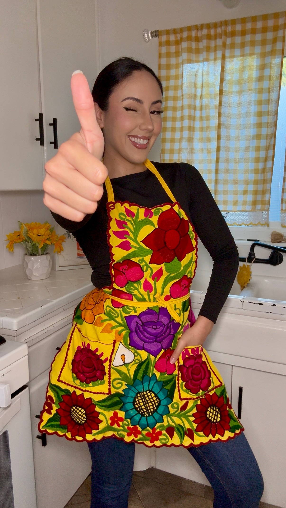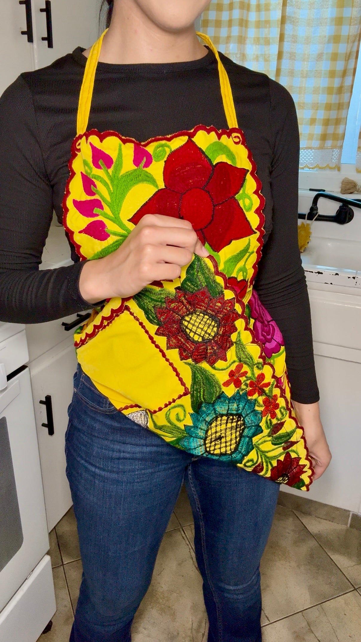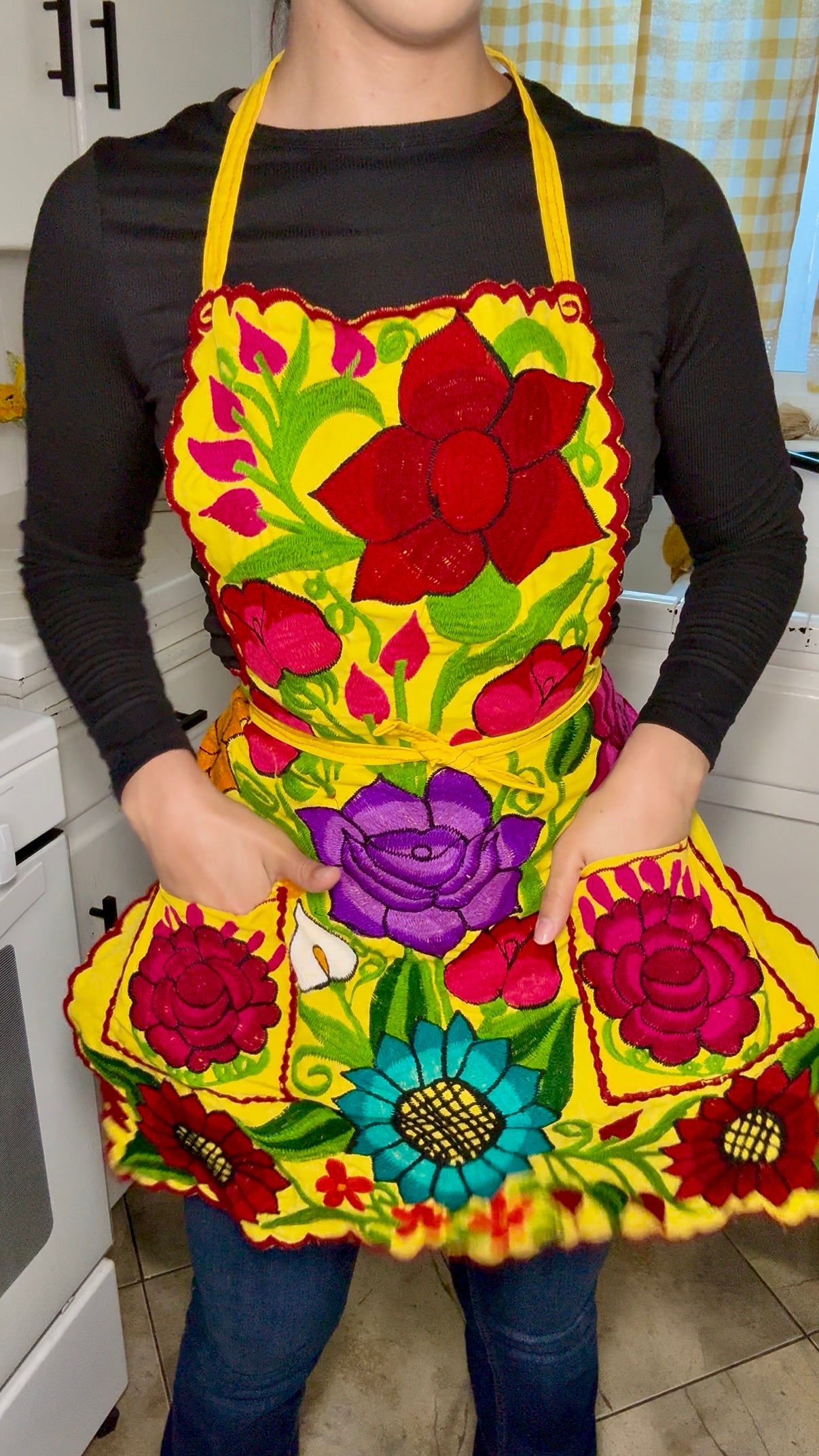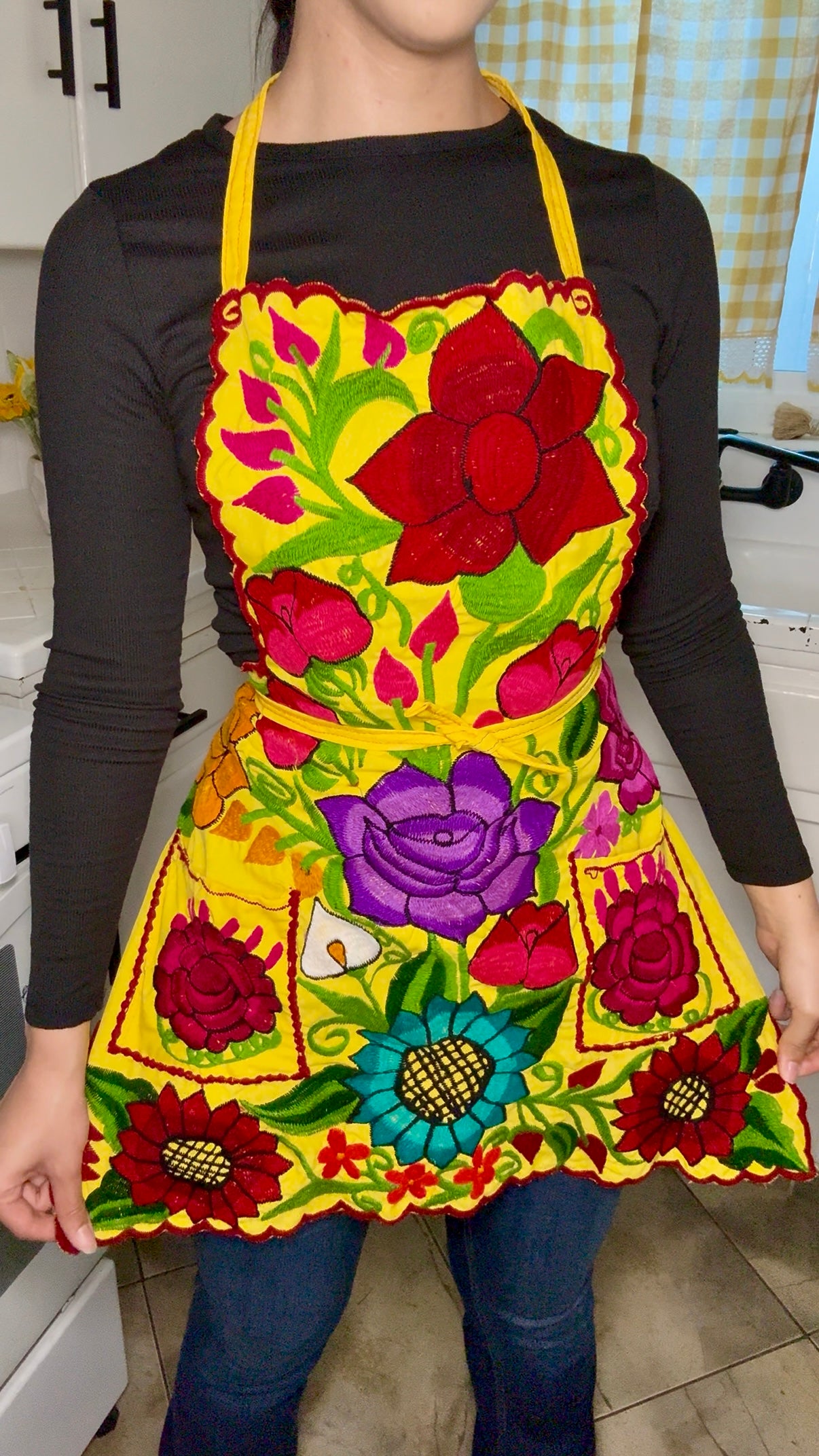 Yellow Mexican Embroidery Apron